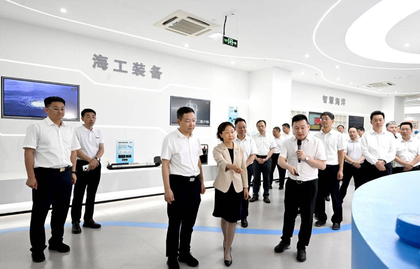 7月3日,福建省委常委、福州市委書記郭寧寧率領(lǐng)市四套班子和福州新區(qū)有關(guān)領(lǐng)導(dǎo)一行蒞臨連江縣開展2024年全市重點項目建設(shè)“亮?xí)癖葘W(xué)”活動。在此次活動中,申海創(chuàng)新實驗室作為重點考察項目之一,主要考察智慧海洋核心技術(shù)與產(chǎn)品研發(fā)、海洋新質(zhì)生產(chǎn)力培育等情況。申昊科技CTO、福建申昊公司董事長、申海創(chuàng)新實驗室負責(zé)人吳海騰向考察團詳細匯報實驗室發(fā)展情況與成果。